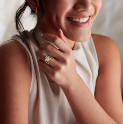 The allure of gold and diamonds calls for admiration from afar—frequent contact can tarnish gold's glow and dull diamonds' sparkle. When handling these precious pieces, especially rings, it's best to hold them by the band to avoid direct contact with the gemstone or gold surface.