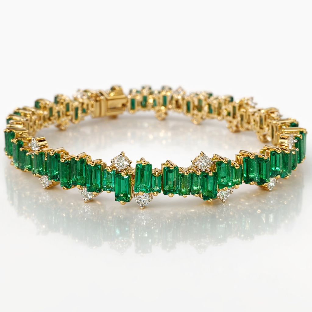 A masterwork of symmetry and light. Vivid emeralds of extraordinary depth alternate with impeccably matched diamonds, culminating in a commanding emerald pendant suspended in perfect balance. Set in white gold, this necklace embodies timeless grandeur and the rare beauty of exceptional stones.